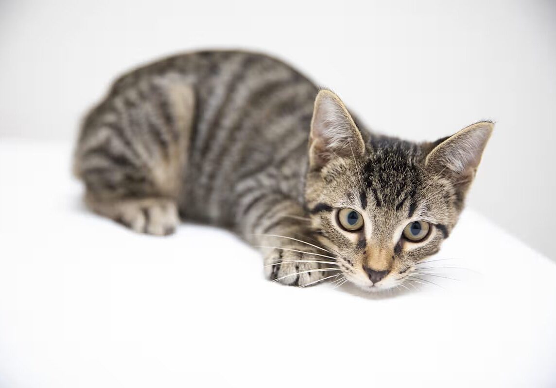 curious kitten with grey and black stripes