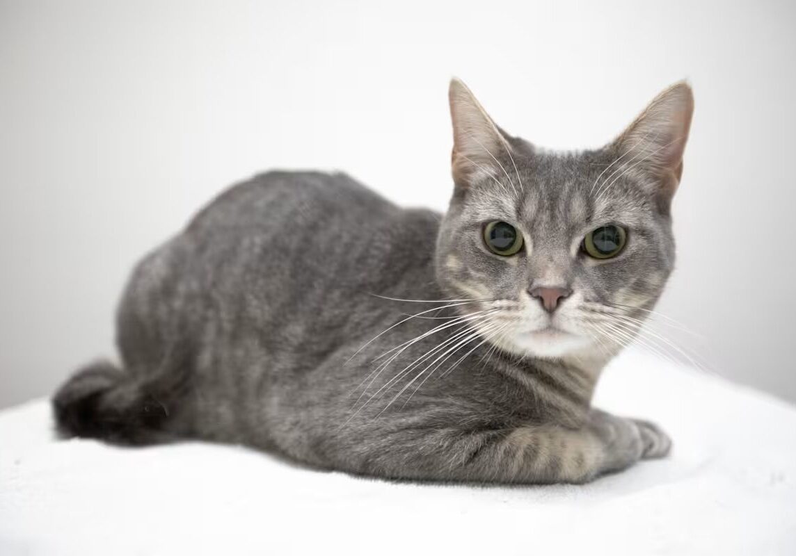 Tellie and Tubbie are great cats, are very loving once they get to know you. Although Tellie’s face looks quite serious, it’s only because she is a little bit shy; she is actually very affectionate. Tubbie is the more outgoing of the two, but Tellie is more likely to cuddle up to you on the couch for some snuggles. They both like to play, and are particularly fond of felt balls that they can chase around. They like other cats, and are best buddies with Fiona, with whom they have been living. They can be adopted with her, or she can be adopted separately. Because Tellie is a little bit nervous with new people, and loud noises/fast movements, a home without young/very energetic children would be the best fit for them. They will make wonderful additons to a calm, patient household, who will have plenty of time to snuggle, and who will give them the time they need to settle in.